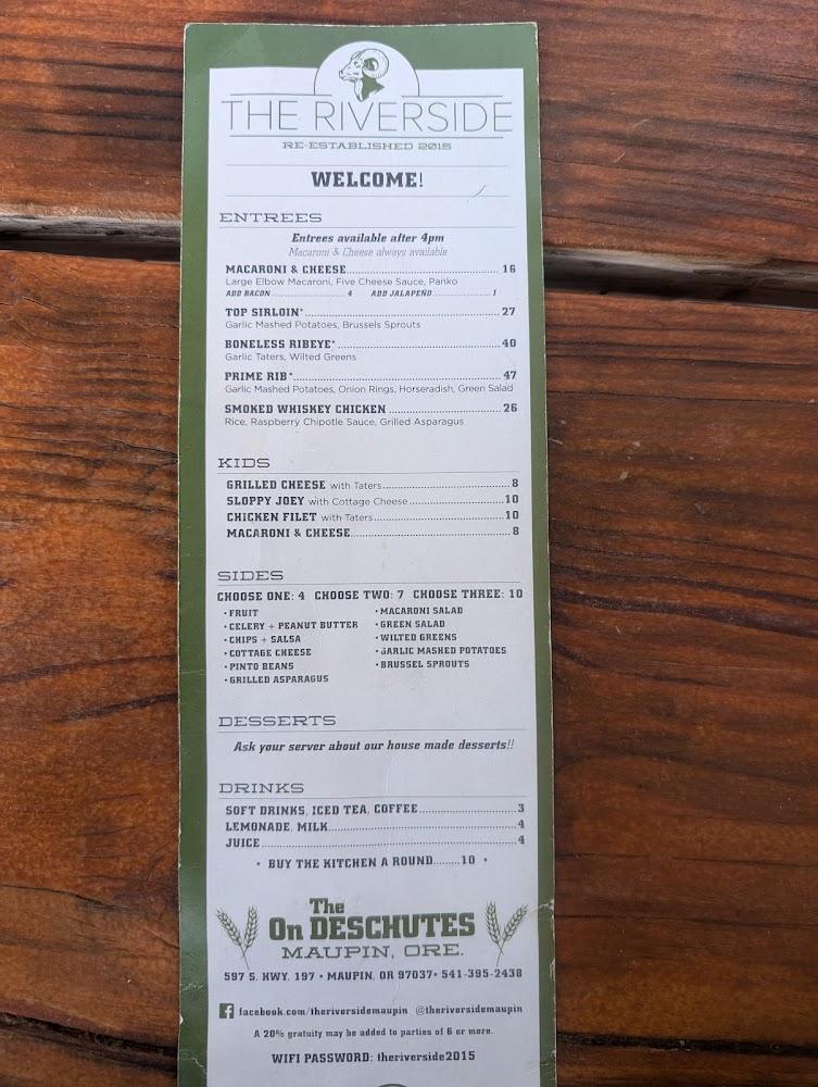 Welcome to The Riverside, your go-to destination for homemade comfort foods, smoked meats, and aged steaks paired with craft brews and cocktails! Located in scenic Maupin, OR, we offer a cozy indoor atmosphere, bar seating, and a seasonal outdoor deck. Enjoy our beautiful back area featuring a fire pit, outdoor games, and a perfect setting for families and friends. With a commitment to quick service and local specialties, we invite you to savor delightful meals in a welcoming environment. Reservations are recommended during the busy spring and summer months. Come join us for an unforgettable dining experience!
